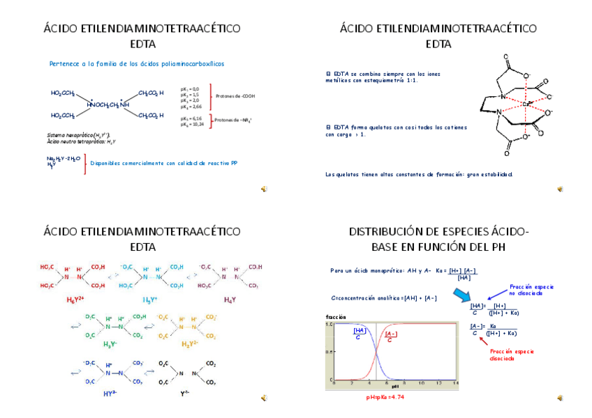 AGENTES QUELANTES, ÁCIDO ETILENDIAMINOTETRAACÉTICO,CURVA DE TITULACIÓN ,EQUILIBRIOS ÁCIDO‐BASE DEL EDTA ,