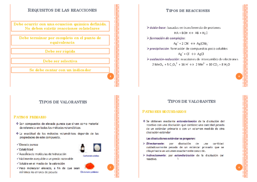 VALORACIONES VOLUMÉTRICAS, TIPOS DE REACCIONES, INDICADORES ACIDO-BASE,