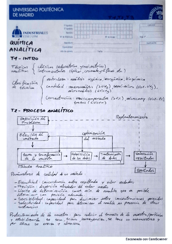 Apuntes de la asignatura Química Analítica a partir de las presentaciones del profesor impartidas durante las clases.