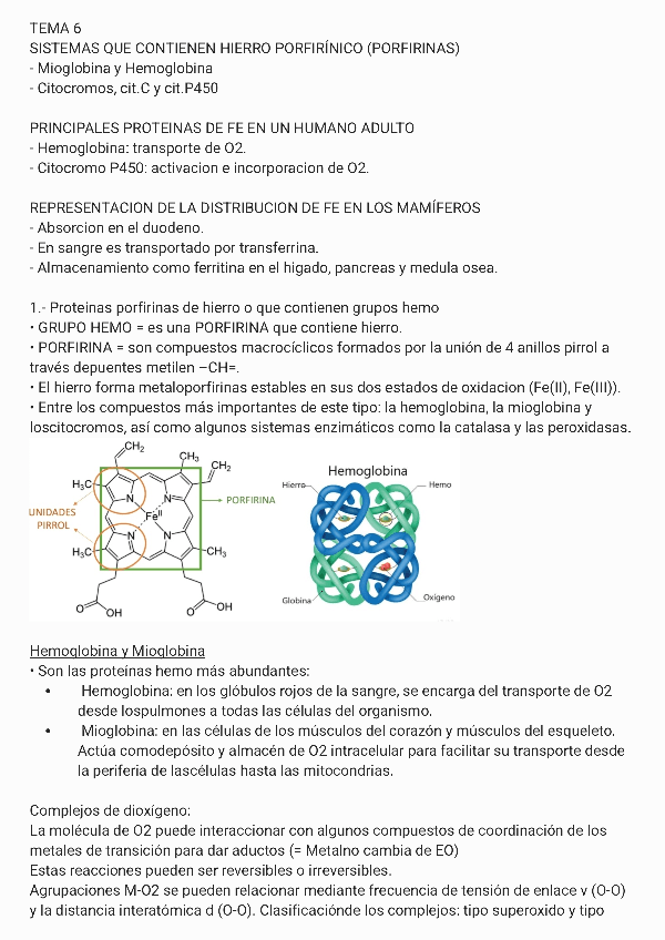 He publicado nuevos apuntes de 2º Química Bioinorgánica: temario con MATRICULA DE HONOR