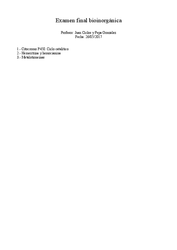 He publicado nuevos examenes de 2º Química Bioinorgánica: Examen bioinorganica.pdf