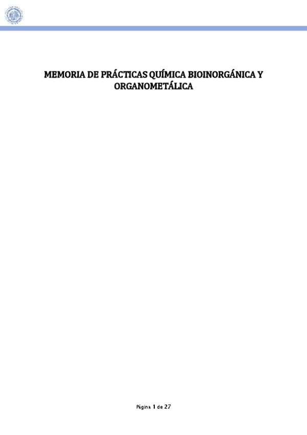 He publicado el informe de prácticas de la asignatura de Química Bioinorgánica y Organometálica de 4º de Química.