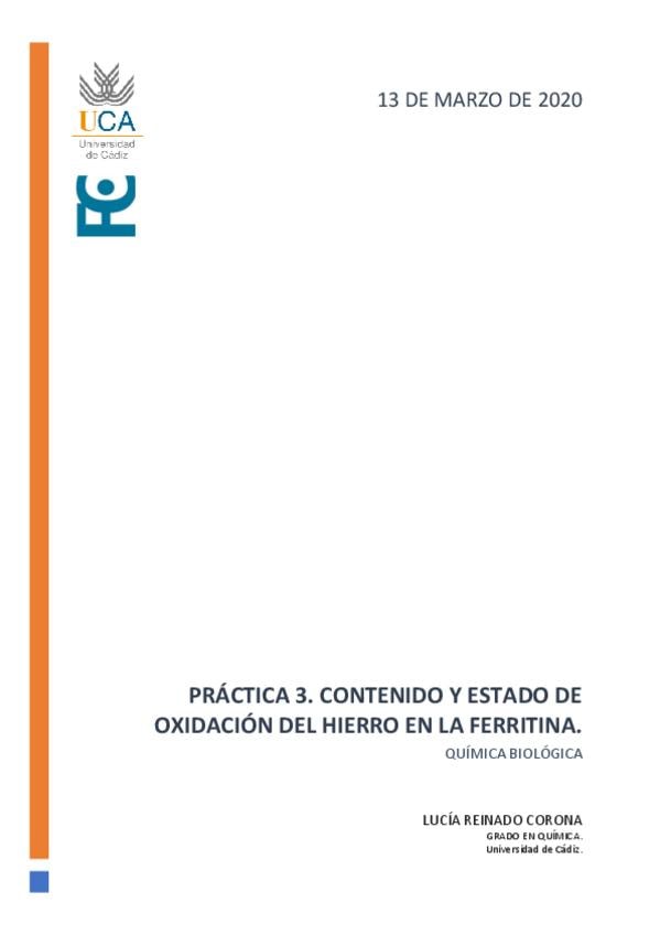 He publicado nuevos practicas de 3º Química Biológica: Práctica 3 Contenido-y-estado-de-oxidacion-del-hierro-en-la-ferritina.pdf
