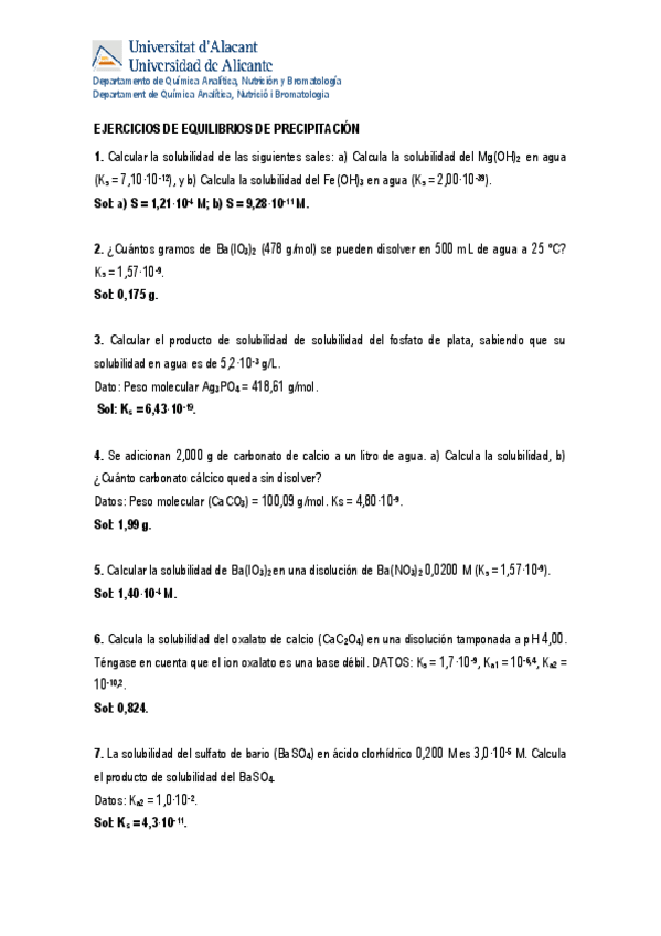 Ejercicios precipitados resueltos