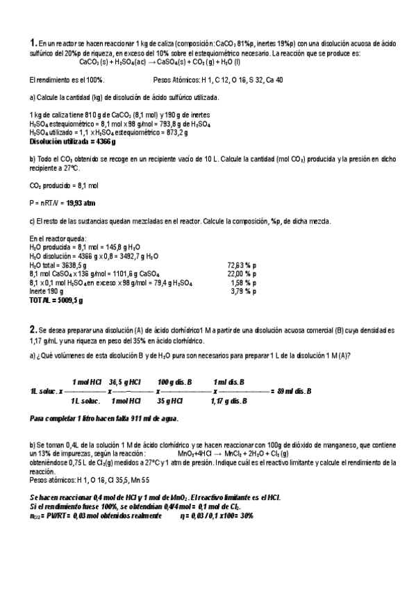 Examenes resueltos Estequiometria