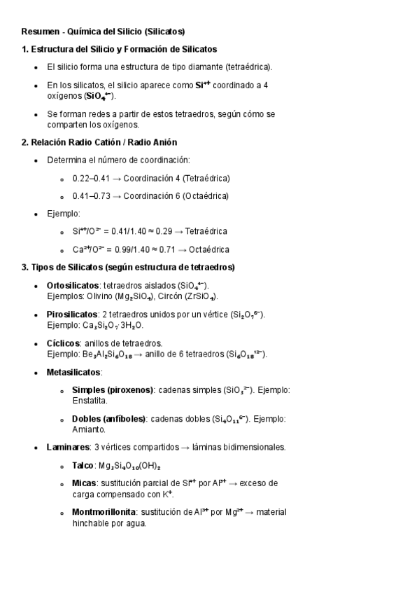He publicado nuevos apuntes de 1º Química de Materiales: Resumen-Silicatos.pdf