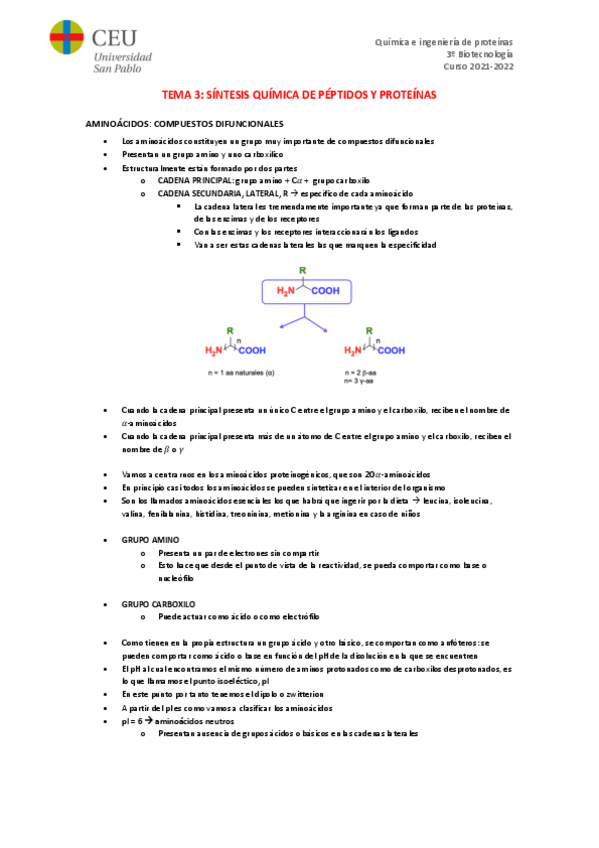 He publicado nuevos apuntes de 3º Química e Ingeniería de Proteínas: 1º Parcial Quím e Ing de Proteínas