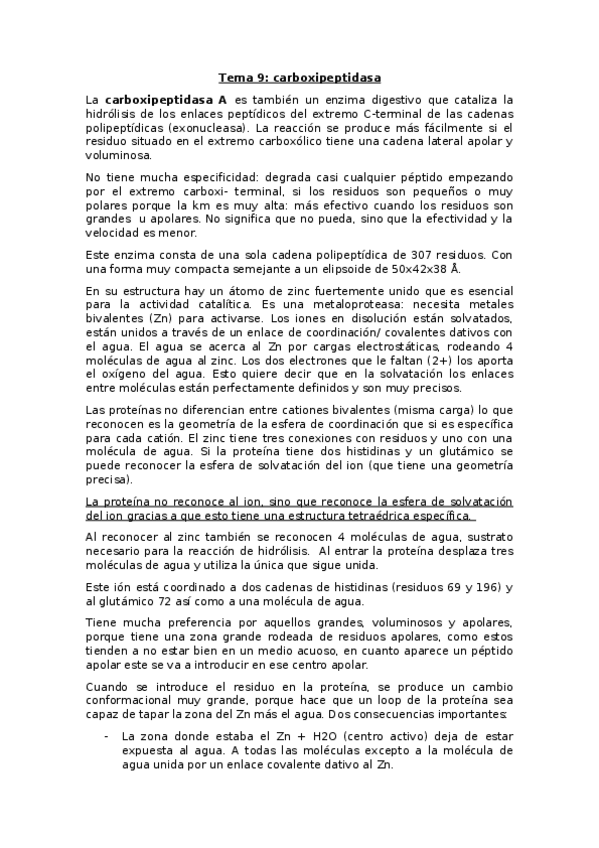 He publicado nuevos apuntes de 3º Química e Ingeniería de Proteínas: Carboxipeptidasa-metaloproteasa.pdf