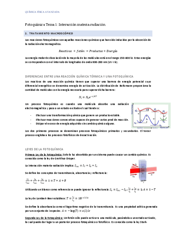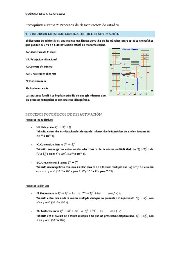 He publicado nuevos apuntes de 4º QUÍMICA FÍSICA AVANZADA: Resumenes Fotoquímica