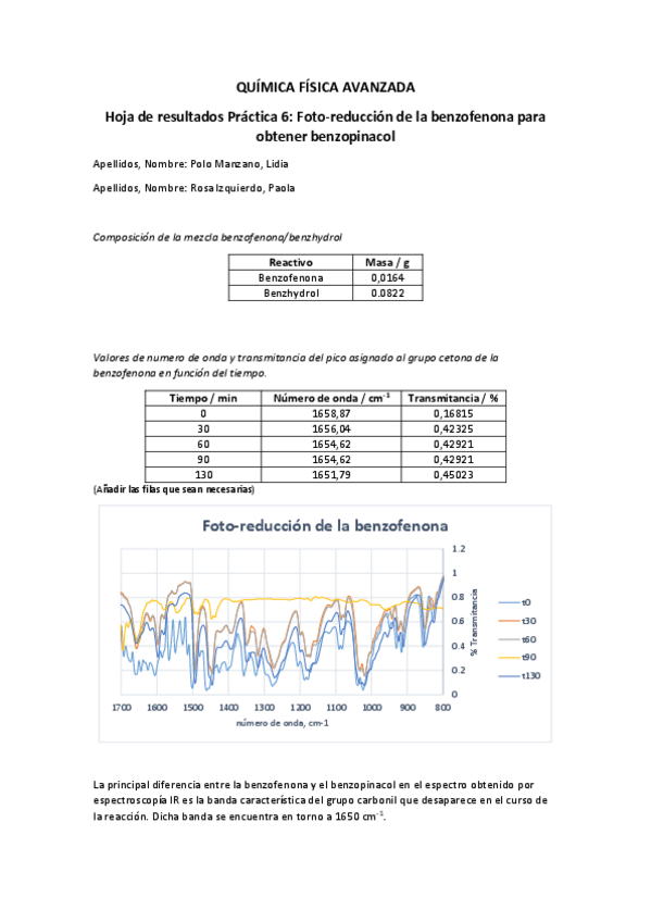 He publicado nuevos practicas de 4º QUÍMICA FÍSICA AVANZADA: Practica-6-Fotorreduccion-de-la-benzofenona-para-obtener-benzopinacol-informe.pdf