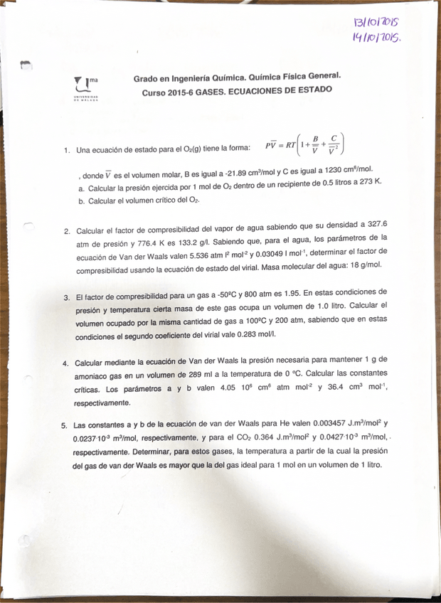 He publicado nuevos ejercicios de 1º Química física general: ejercicios tema 5