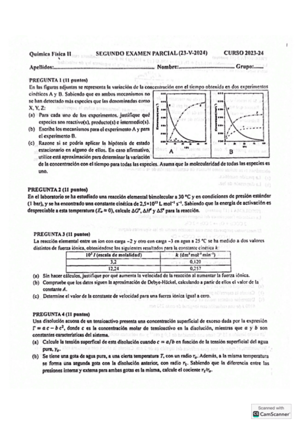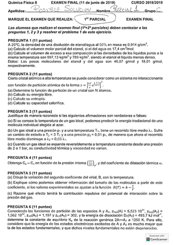 He publicado nuevos apuntes de 3º Química Física II: Exámenes corregidos Segundo parcial