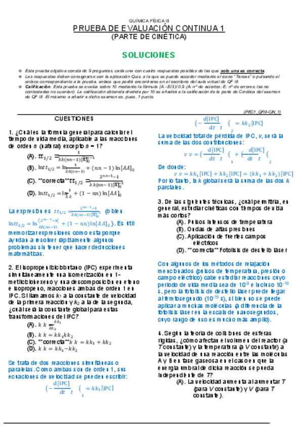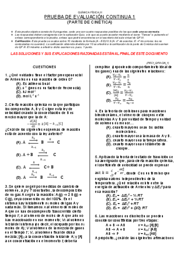 He publicado nuevos examenes de 3º Química Física IIi: Cinética y Electroquímica: Qfiii-Soluciones-PEC-1-Cinetica.pdf