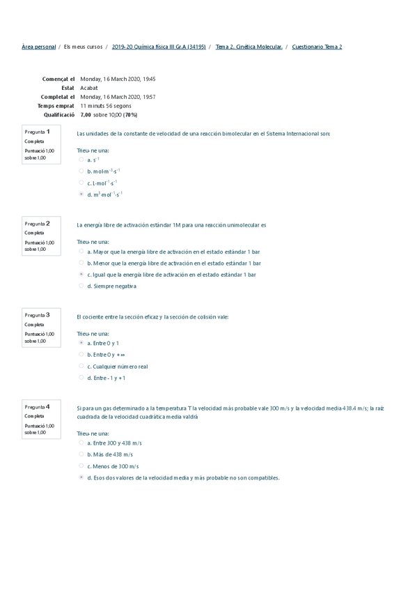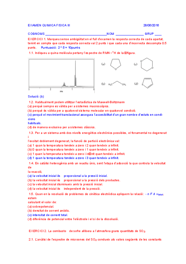 He publicado nuevos examenes de 3º Quimica Física III: Soluciones EXAMENES