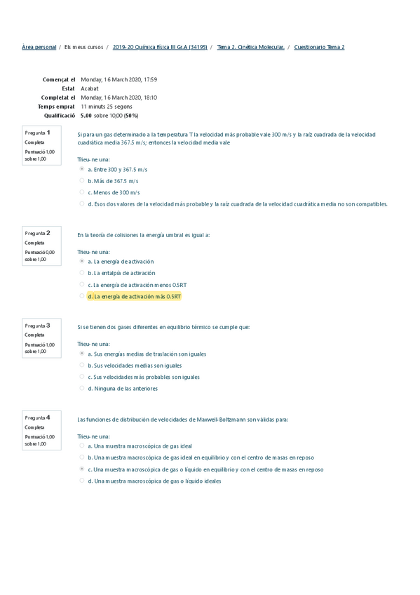 He publicado nuevos test de 3º Quimica Física III: Cuestionarios