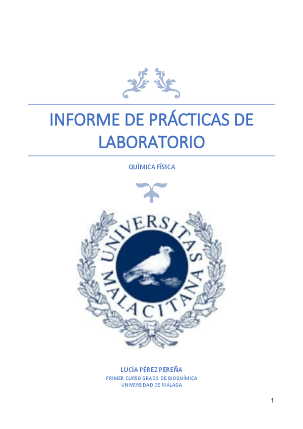 He publicado nuevos practicas de 1º Química Física: INFORME DE LABORATORIO Nota: 1,7/2.pdf