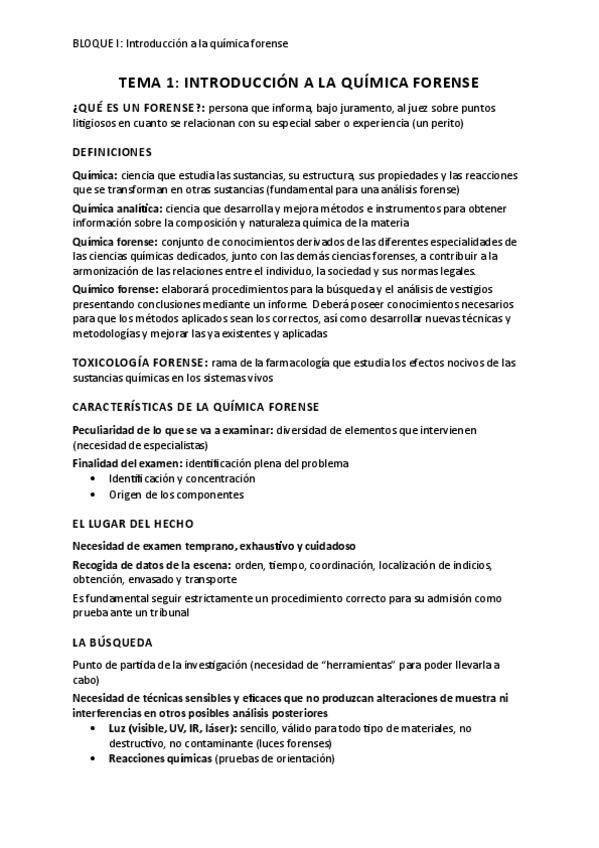 Resumen tema 1: aspectos generales de la química forense