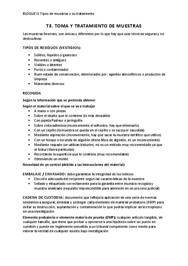 tema 2: etapas preanalíticas quimico-forenses
