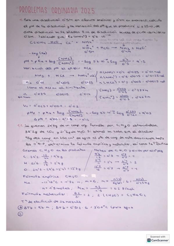 Temas: Representación de compuestos orgánicos, enlace y estructura, estequiometría, disoluciones, equilibrio químico, ácidos y bases (los dos temas) y termodinámica