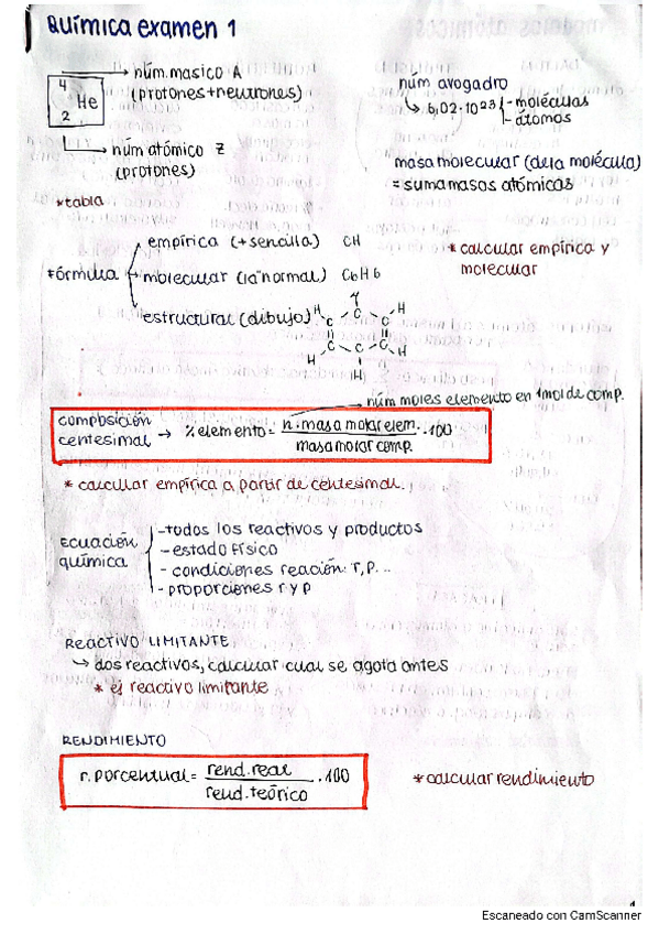 Fórmulas para los ejercicios prácticos del Tema 1 (reactivo limitante, rendimiento y ácido-base)
