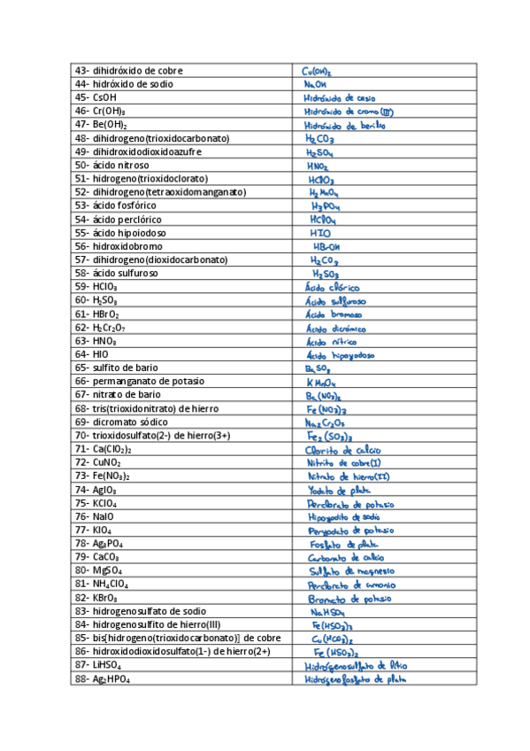 Ejercicios de formulacion y nomenclatura inorganica corregidos para la "Prueba 0"