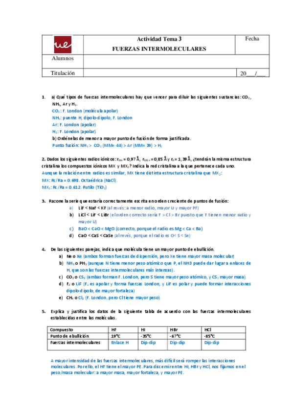 He publicado nuevos ejercicios de 1º Química General II: Ejercicios