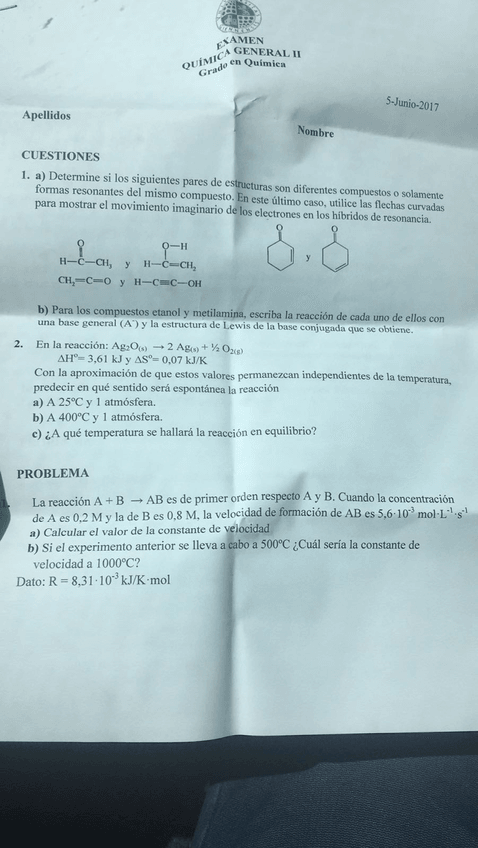 He publicado nuevos apuntes de 1º Química General II: Exámenes de otros años