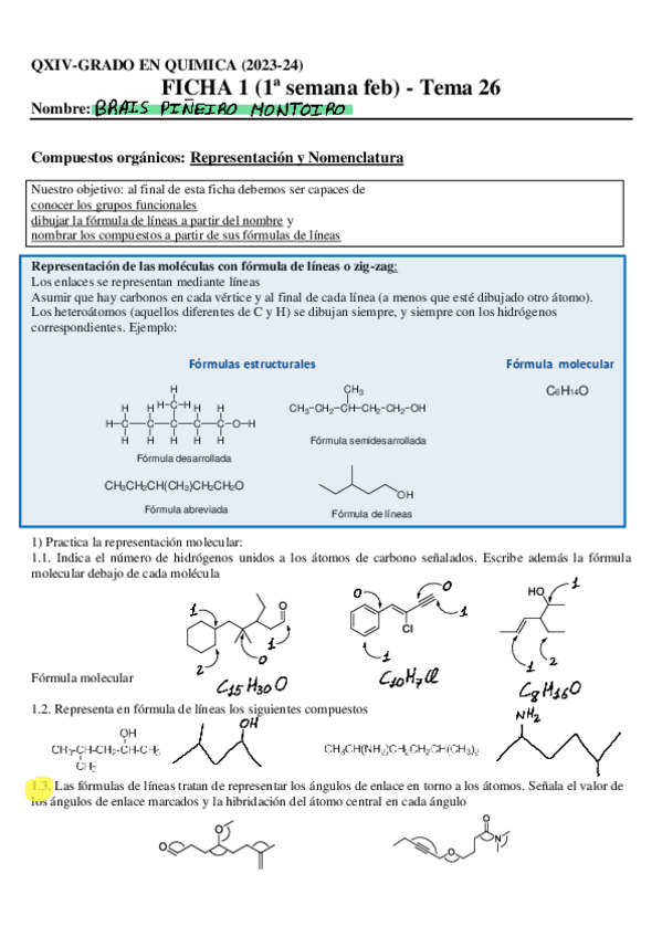 He publicado nuevos ejercicios de 1º Química General Iv: Tareas Seminarios Química IV (Orgánica)