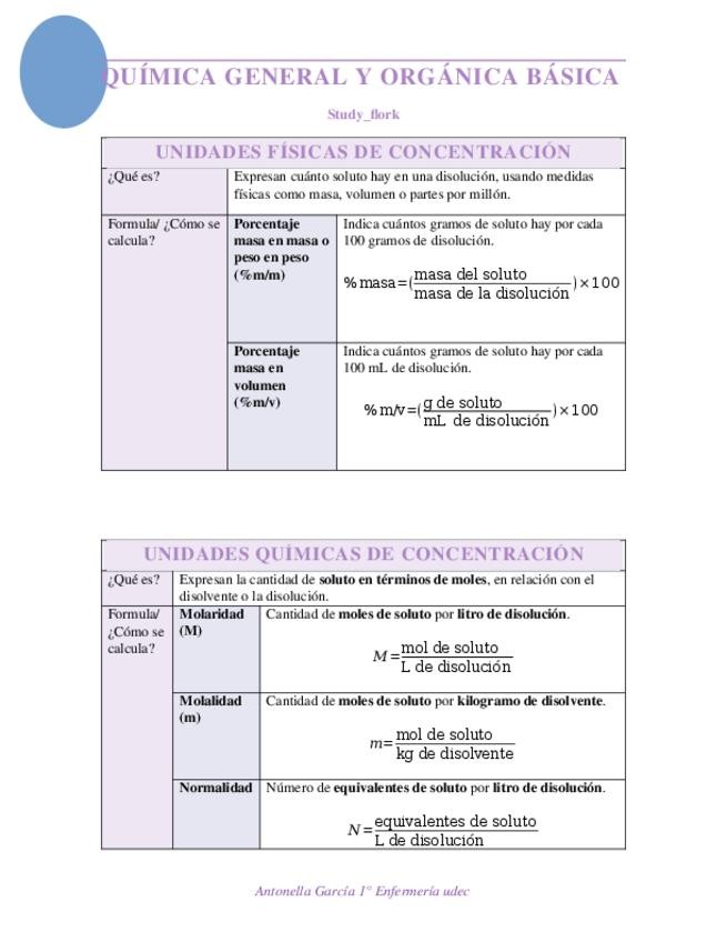 resumen en formato tabla sobre concentraciones físicas y quimicas, ademas de disoluciones