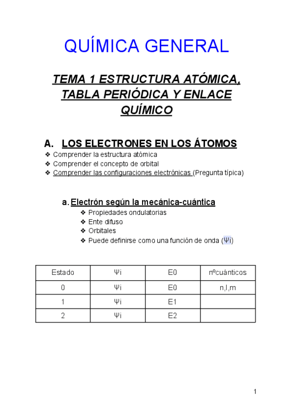 He publicado nuevos apuntes de 1º Química General: Química | Tema 1 | Estructura atómica | Tabla periódica | Enlace químico.pdf