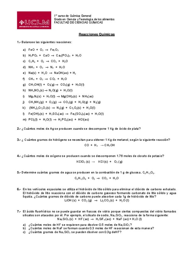 He publicado nuevos ejercicios de 1º Química General: EJERCICIOS-REACCIONES-QUIMICAS.pdf