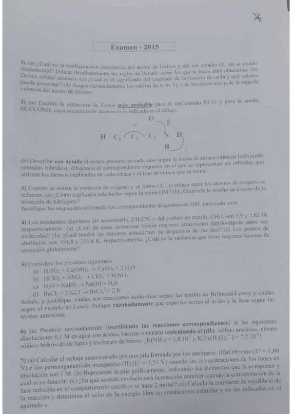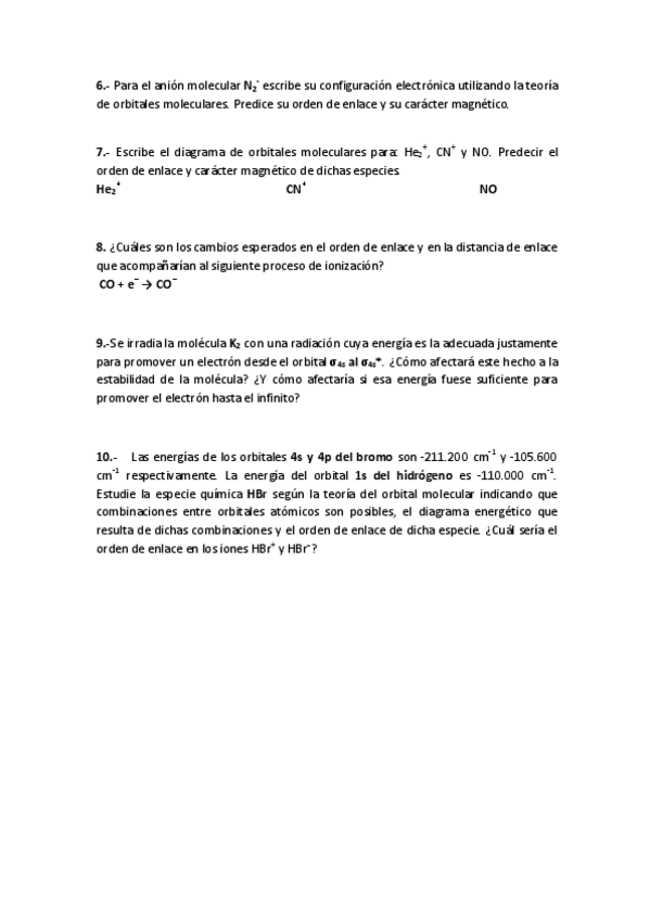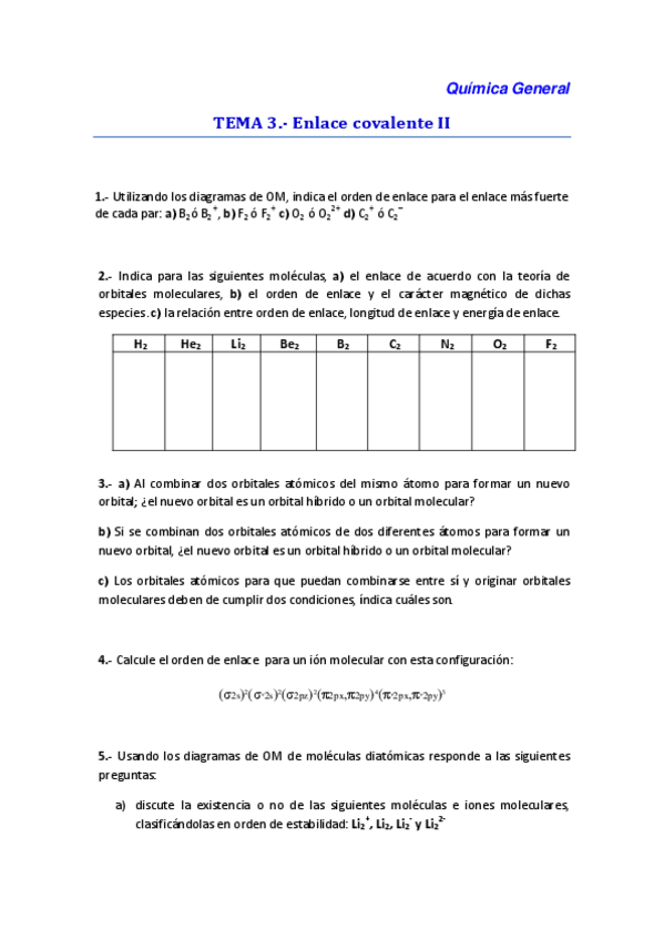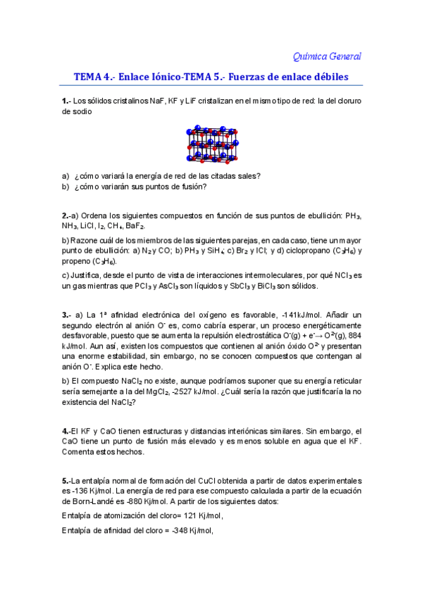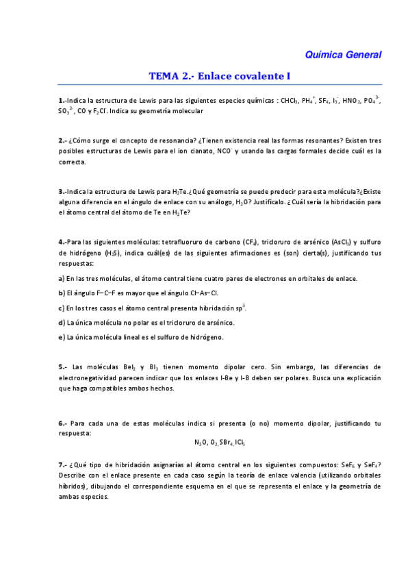 He publicado nuevos ejercicios de 1º Química General: Seminario 6 + ejercicio evaluación continua 2023/2024.pdf