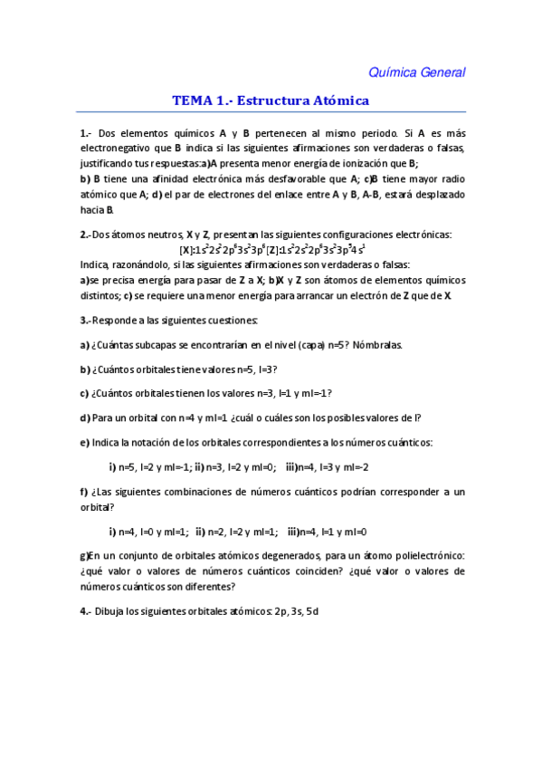 He publicado nuevos ejercicios de 1º Química General: Seminario 1 + ejercicio evaluación continua 2023/2024.pdf