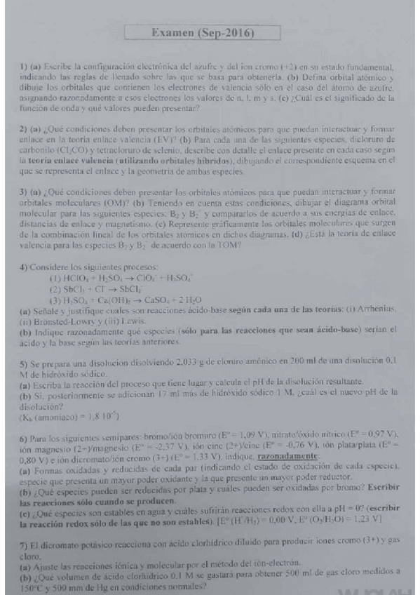 Todo química para el examen con ejericios resueltos y teoría