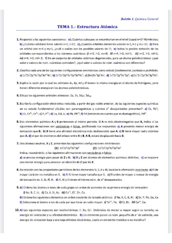 Boletines Temas 1 y 2. Química general. Completos y corregidos