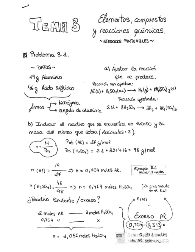 Resumen breve pero con todo lo esencial T3. Elementos compuestos y reacciones quimicas