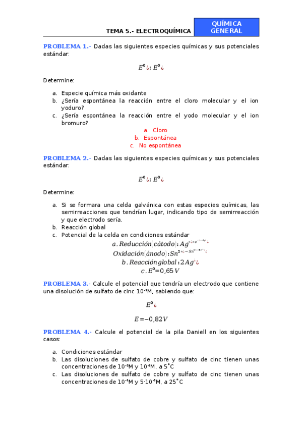 He publicado nuevos ejercicios de 1º Química General: Boletín Tema 6 Electroquímica