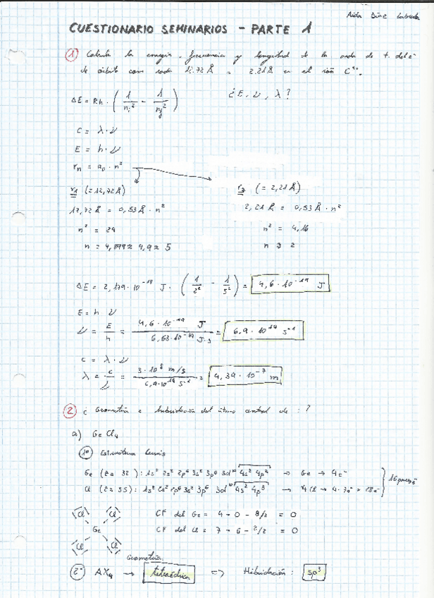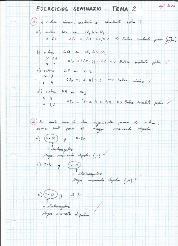 QUÍMICA Ejercicios Seminarios