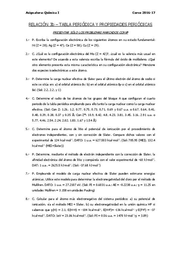 He publicado nuevos ejercicios de 1º Química I: EXAMENES QUIMICA I