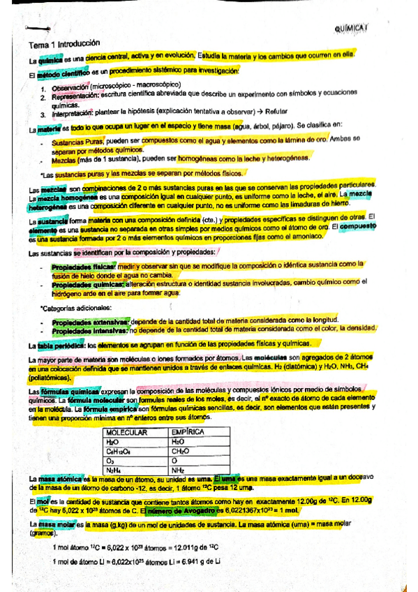 He publicado nuevos apuntes de 1º Química I: QUIMICA I