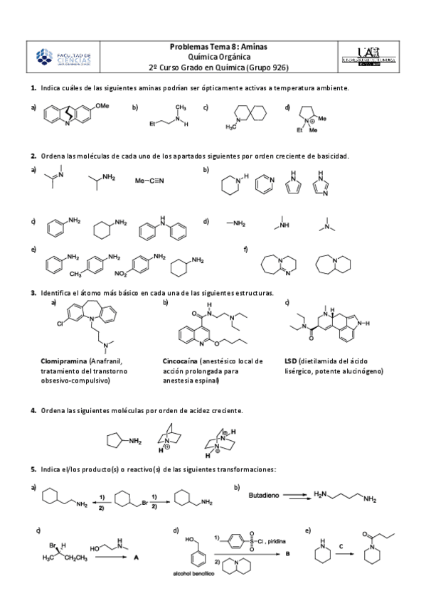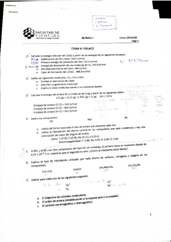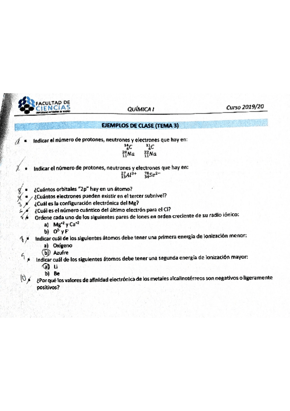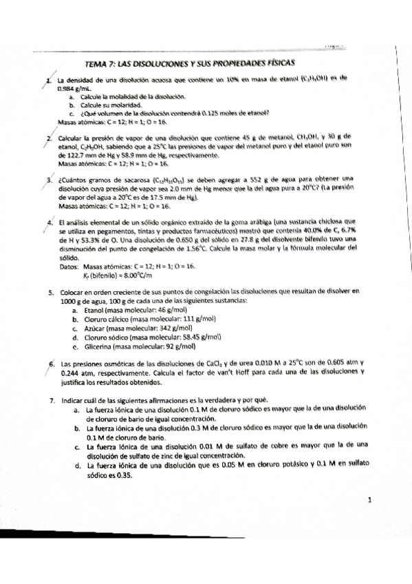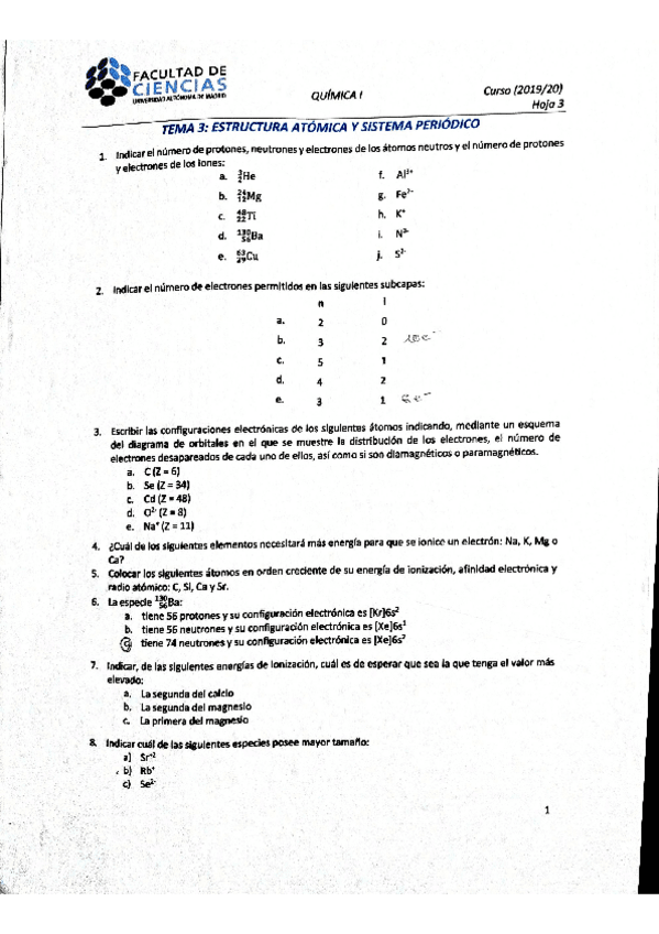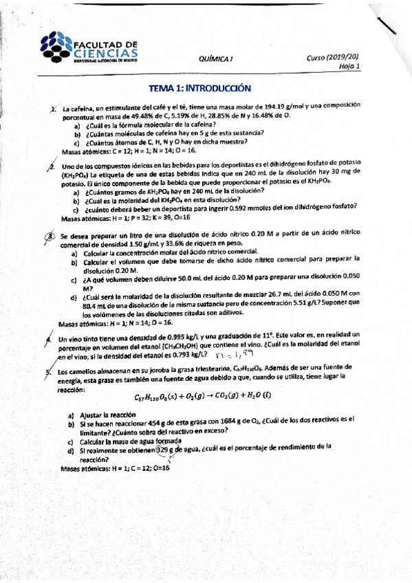 He publicado nuevos ejercicios de 1º Química I: Ejercicios Seminarios