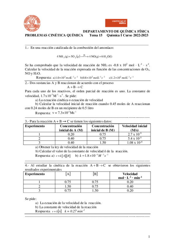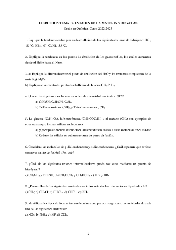 He publicado nuevos apuntes de 1º Química I: Ejercicios