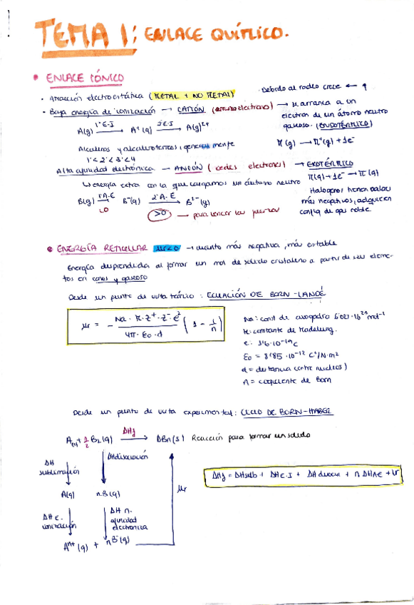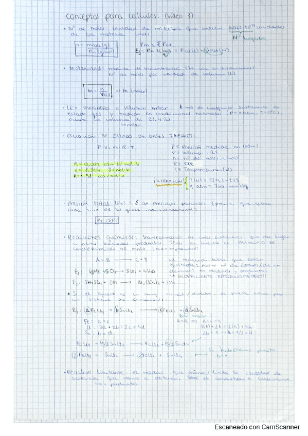 Resumen de apuntes de TODOS los temas de Química I con fórmulas importantes recuadradas y ejemplos