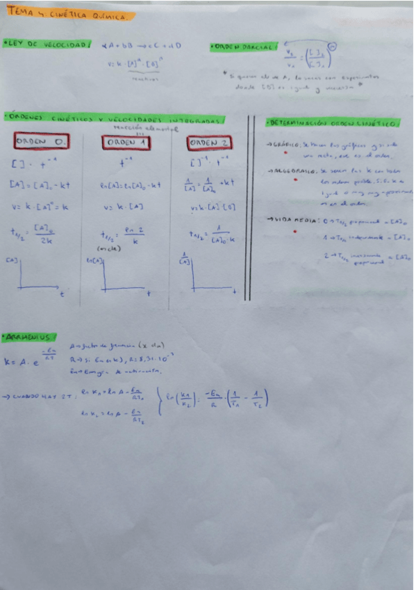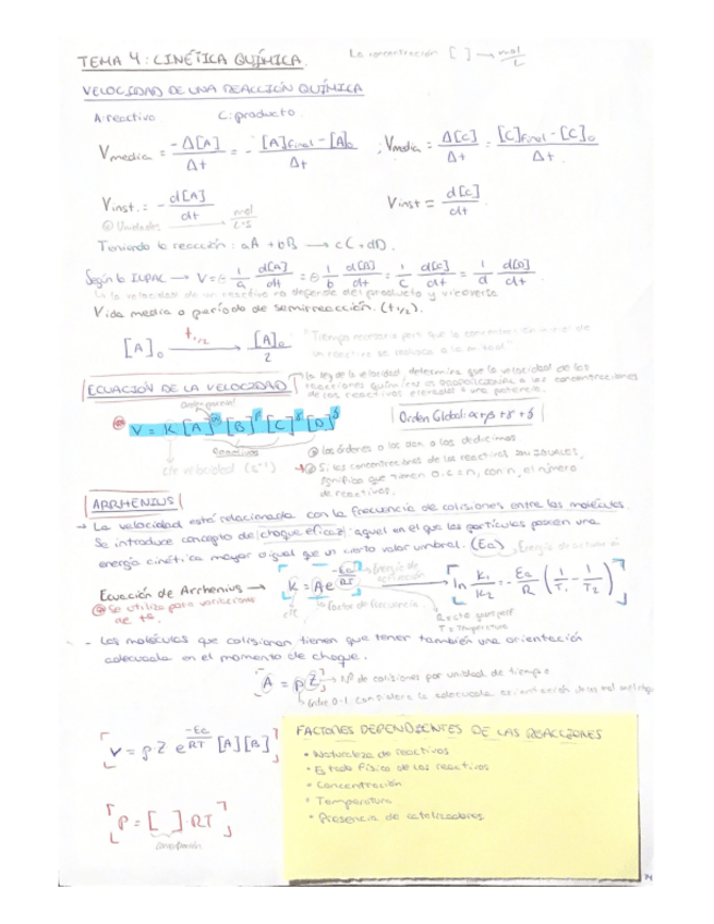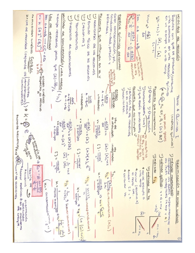 Quimica I Tema 4: Cinética química. Ejercicios clave y conceptos importantes.