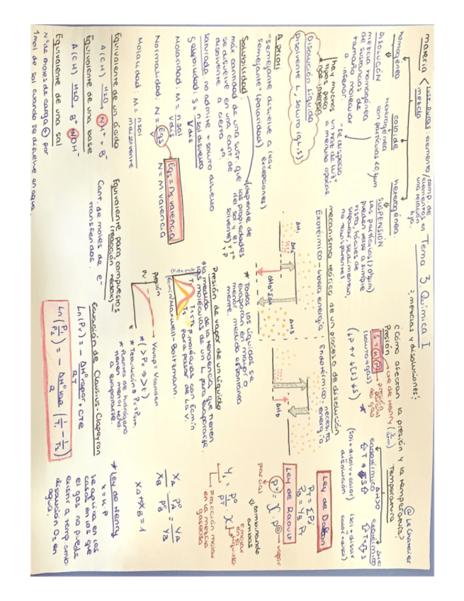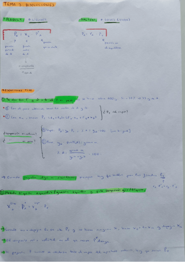 Quimica I Tema 3: Disoluciones. Breve resumen, conceptos importantes y algunos ejercicios clave.
