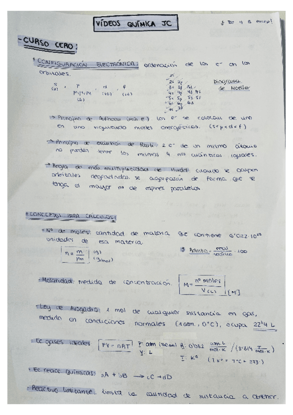 Apuntes y ejercicios de academia, del curso 0 y los temas 1 al 3 de química I.