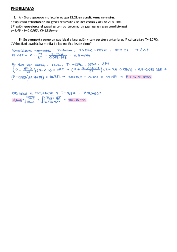 He publicado nuevos ejercicios de 1º Química I: Seminarios-Soluciones