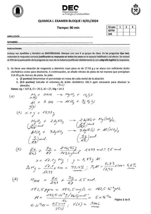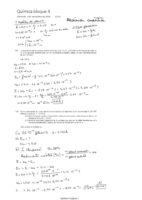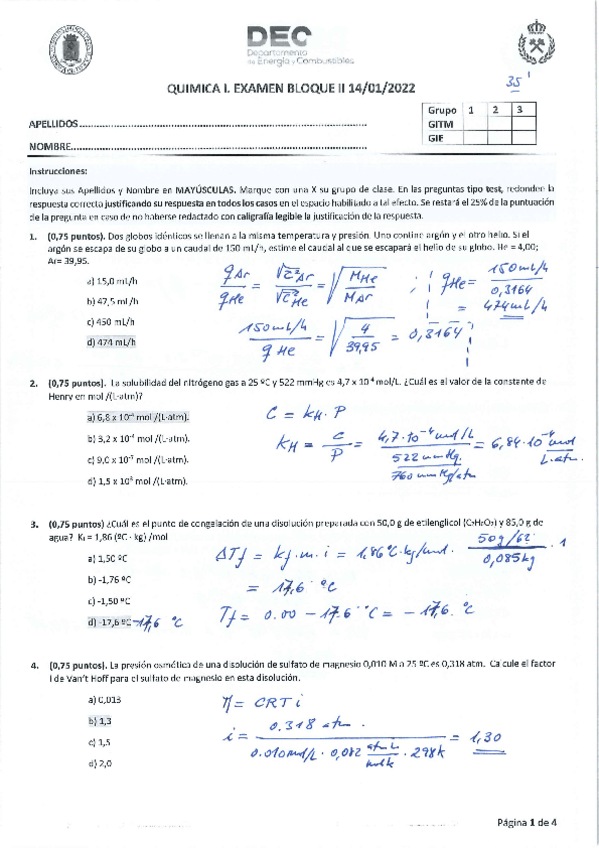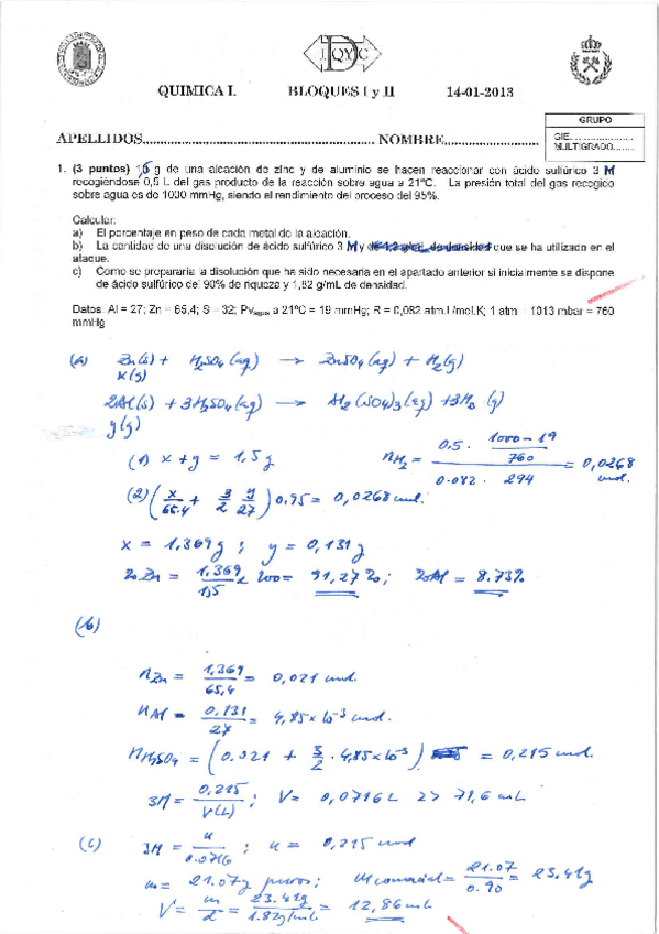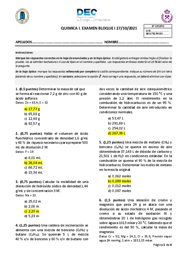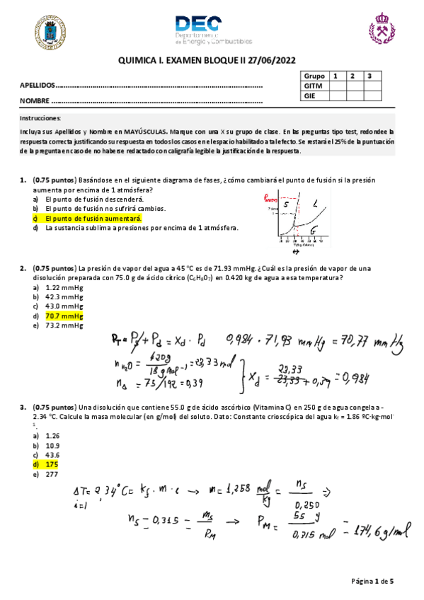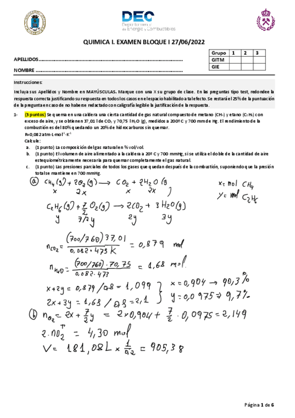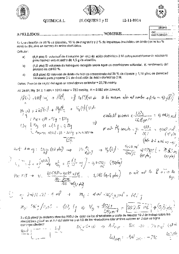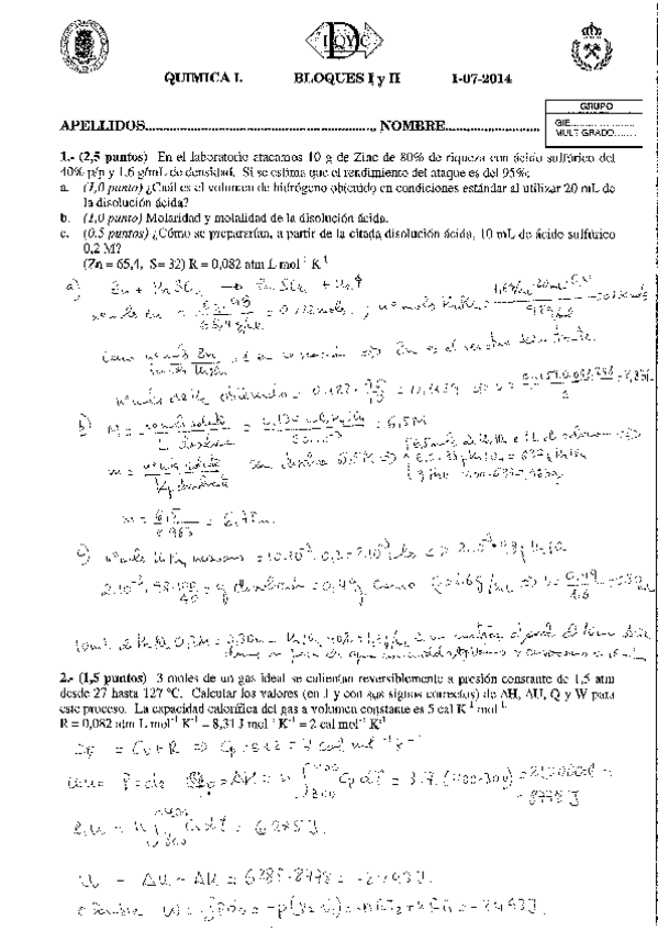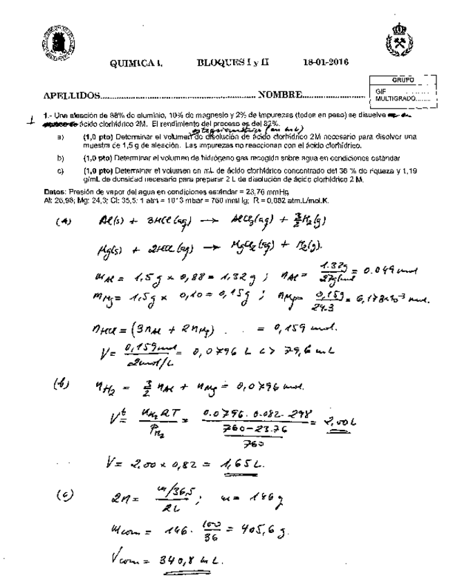 He publicado nuevos apuntes de 1º Química I: Solución examen años anteriores