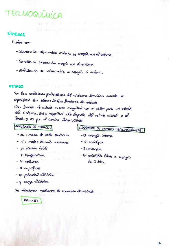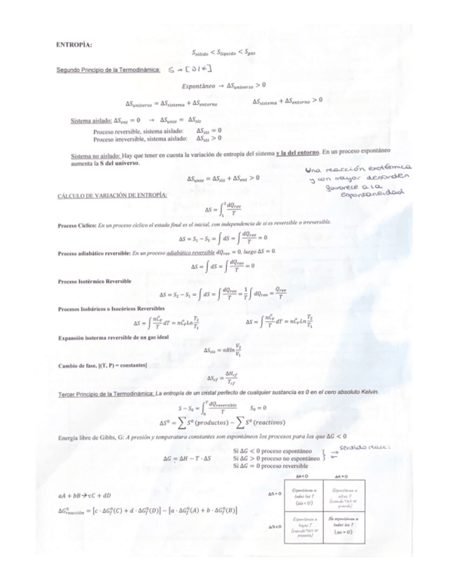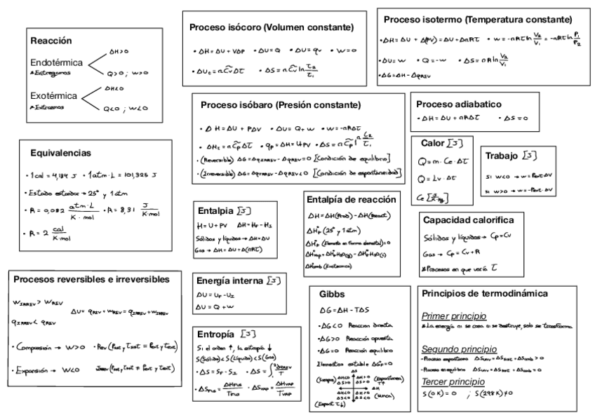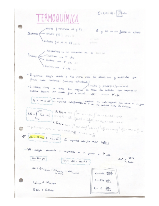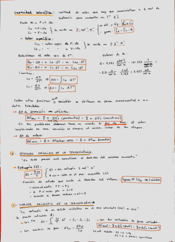 Apuntes del tema de termoquímica resumidos y con las fórmulas que he visto en ejercicios y que hemos usado en clase