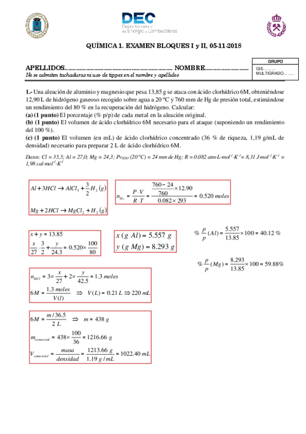 EJERCICIOS RESUELTOS QUIMICA I